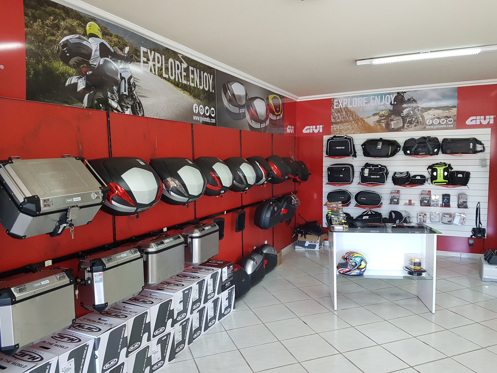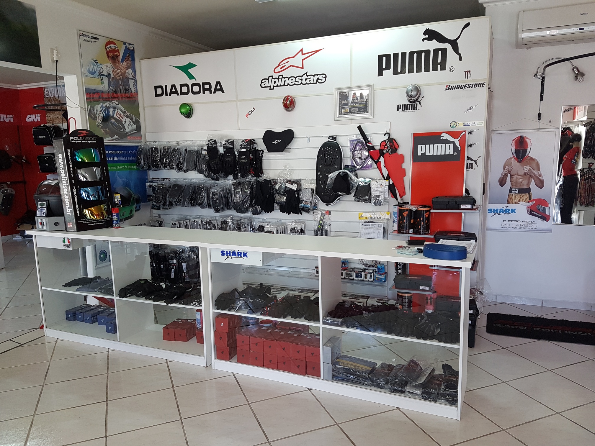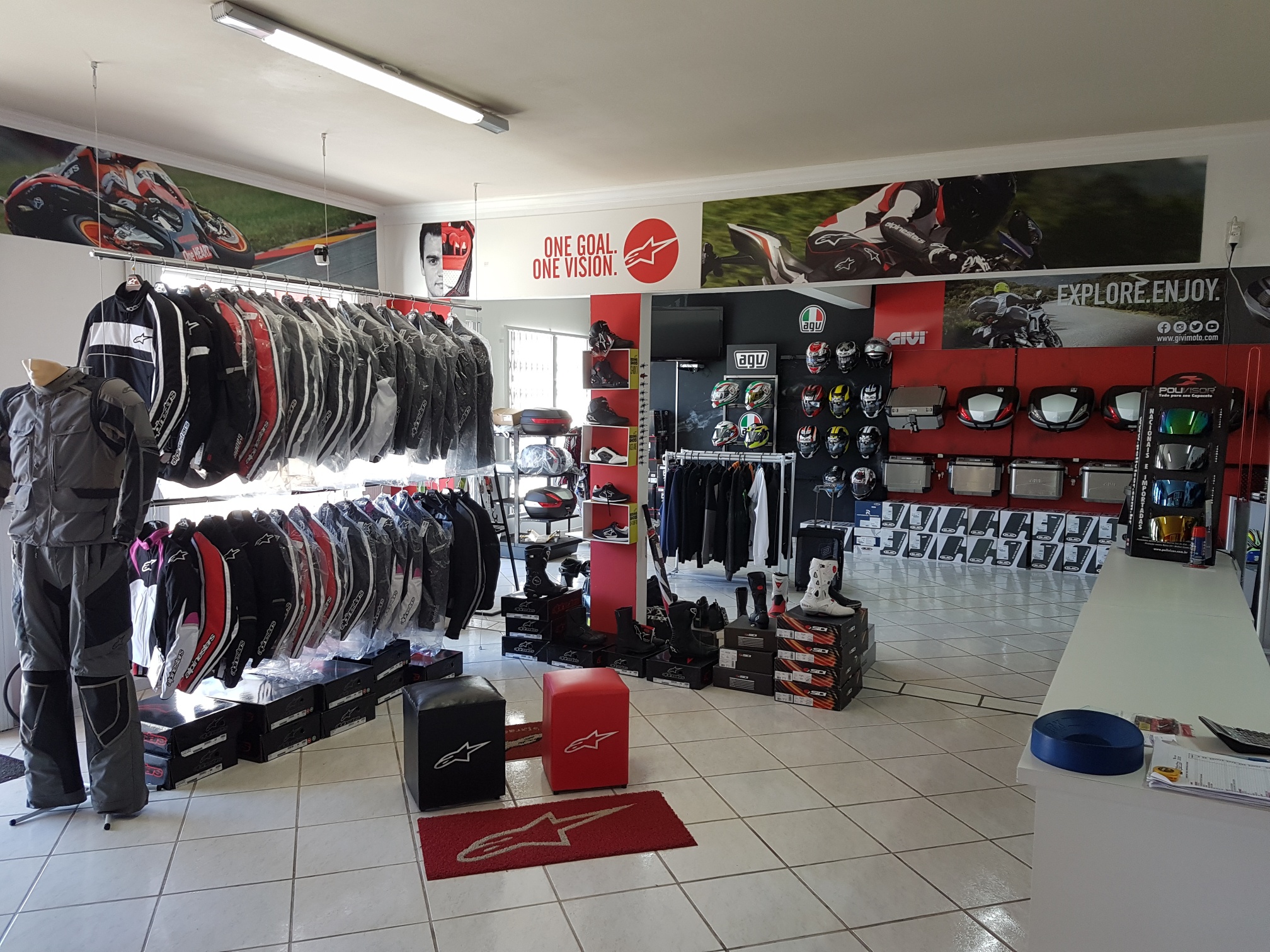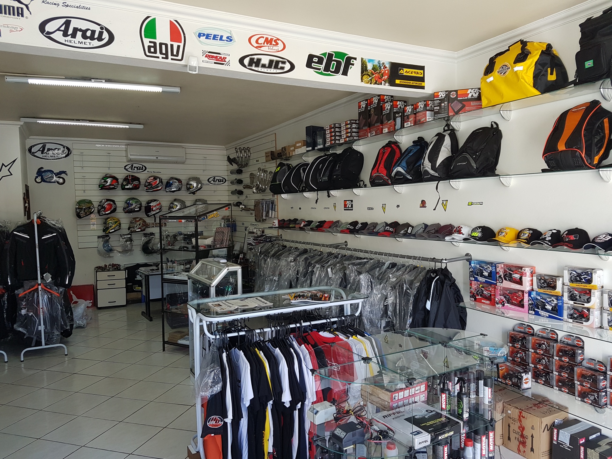 Hoje a empresa possui uma grande opcão em acessórios, linha casual, equipamentos, das marcas ALPINESTARS, DAINESE, REVIT, WXR, TEXX, TUTTO, SHOEI, ARAI, AIROH ,SUOMY, KYT, SHARK, HJC, AGV, LS2, MT HELMETS, ASW, NOLAN, SCHUBERTH, NZI, AKRAPOVIC, YOSHIMURA, RIZOMA, PUIG, ZERO GRAVITY, OXXY, XTREME LINE, MOTOSTYLE, ANKER, INTERPHONE, CARDO, SENA,TWO BROTHERS, K&N, BMC, MOTUL, FIRETONG, GIVI, SOLO, HLX, CURTLO... entre outras...